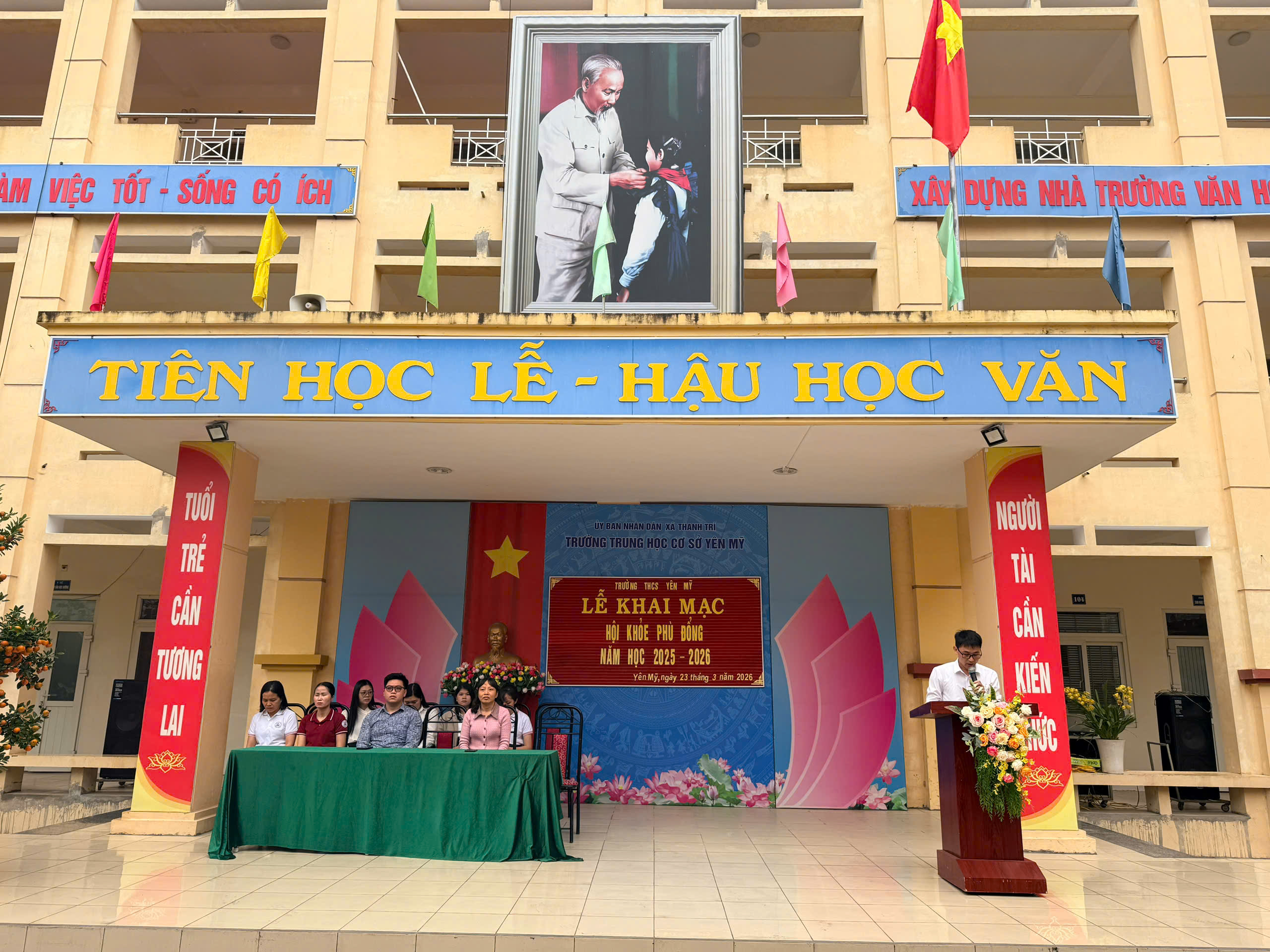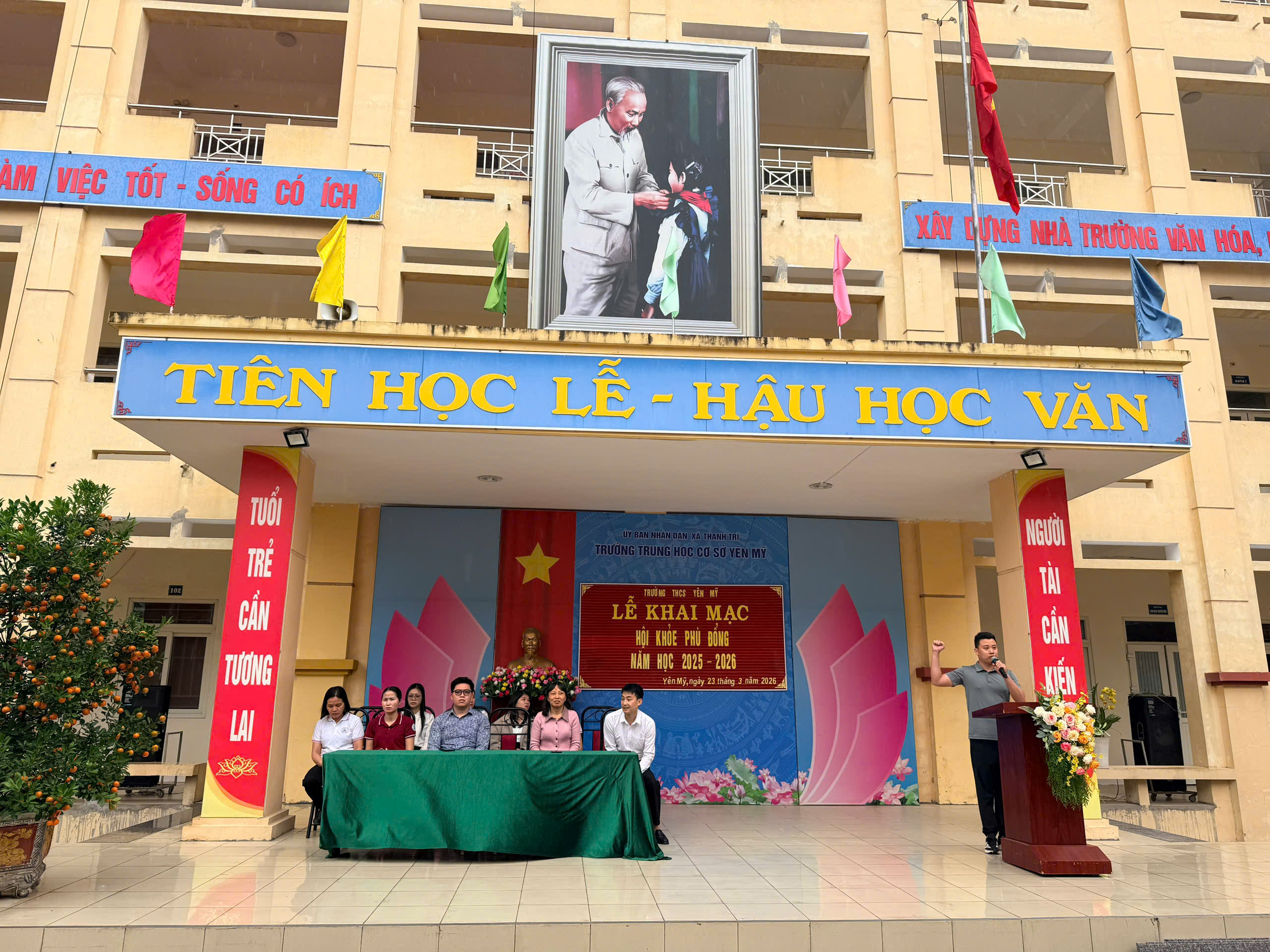 Sáng ngày 23/3/2026, Trường THCS Yên Mỹ long trọng tổ chức Lễ khai mạc Hội khỏe Phù Đổng năm học 2025 – 2026 trong không khí sôi nổi, hào hứng.
