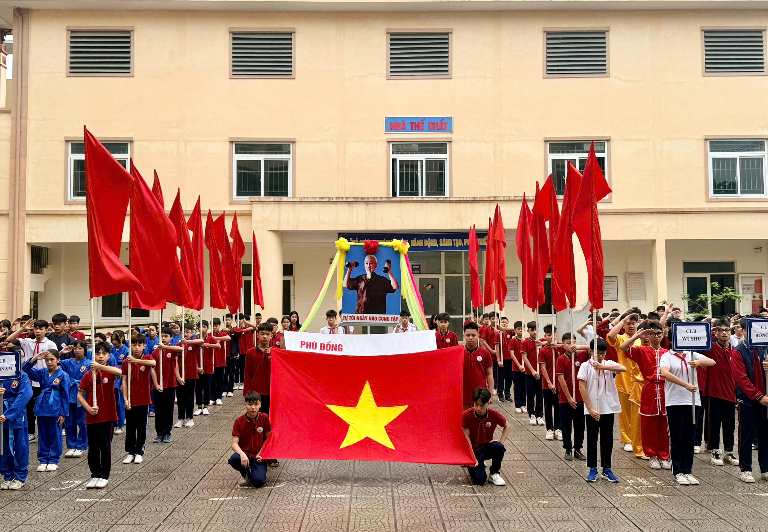 Đặc biệt, chương trình còn có các tiết mục biểu diễn đặc sắc như múa võ Vovinam và wushu (trường quyền), tạo không khí sôi nổi, cổ vũ tinh thần cho Hội khỏe Phù Đổng năm học mới.
