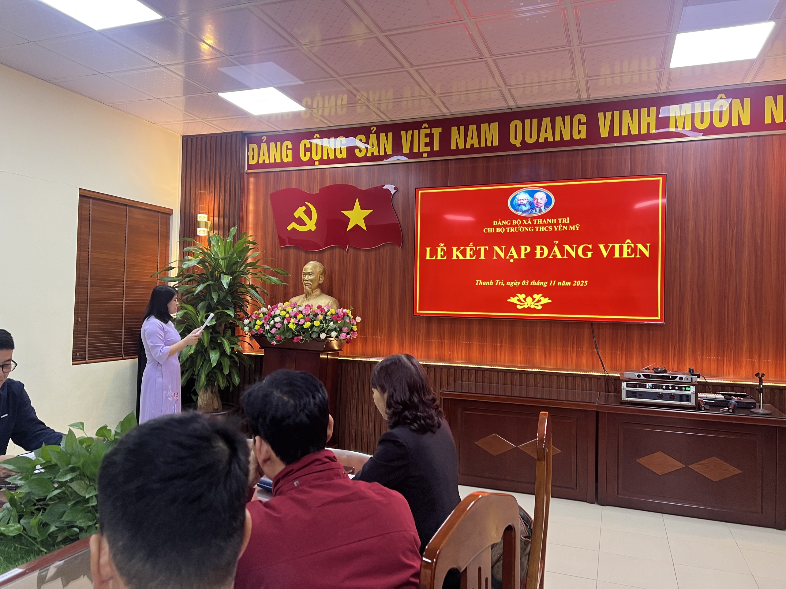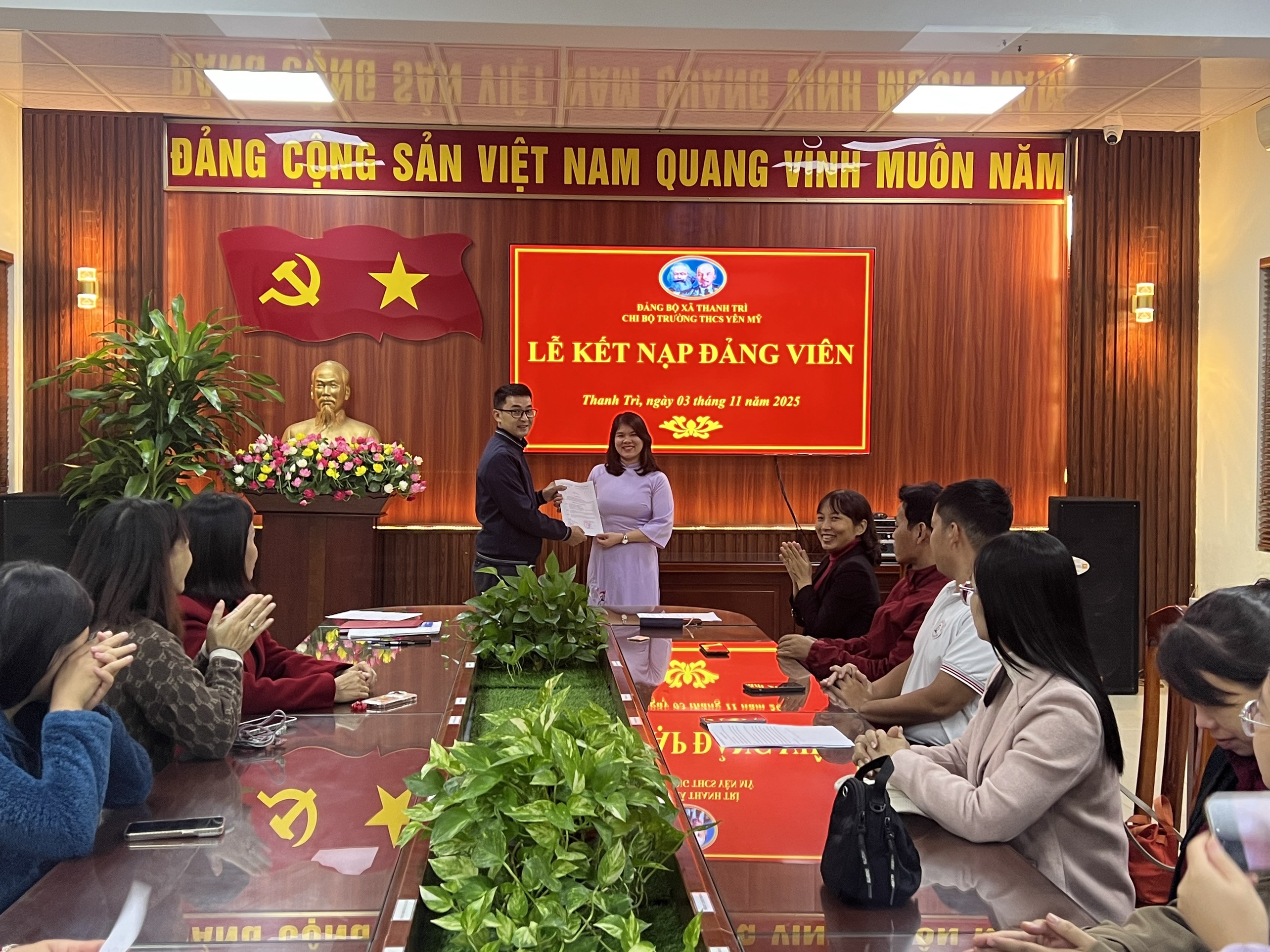 Buổi lễ kết nạp diễn ra trong không khí trang trọng, ấm áp và đầy ý nghĩa. Đây là động lực để mỗi cán bộ, giáo viên trong nhà trường tiếp tục rèn luyện, phấn đấu, góp phần xây dựng Chi bộ trường THCS Yên Mỹ ngày càng vững mạnh.