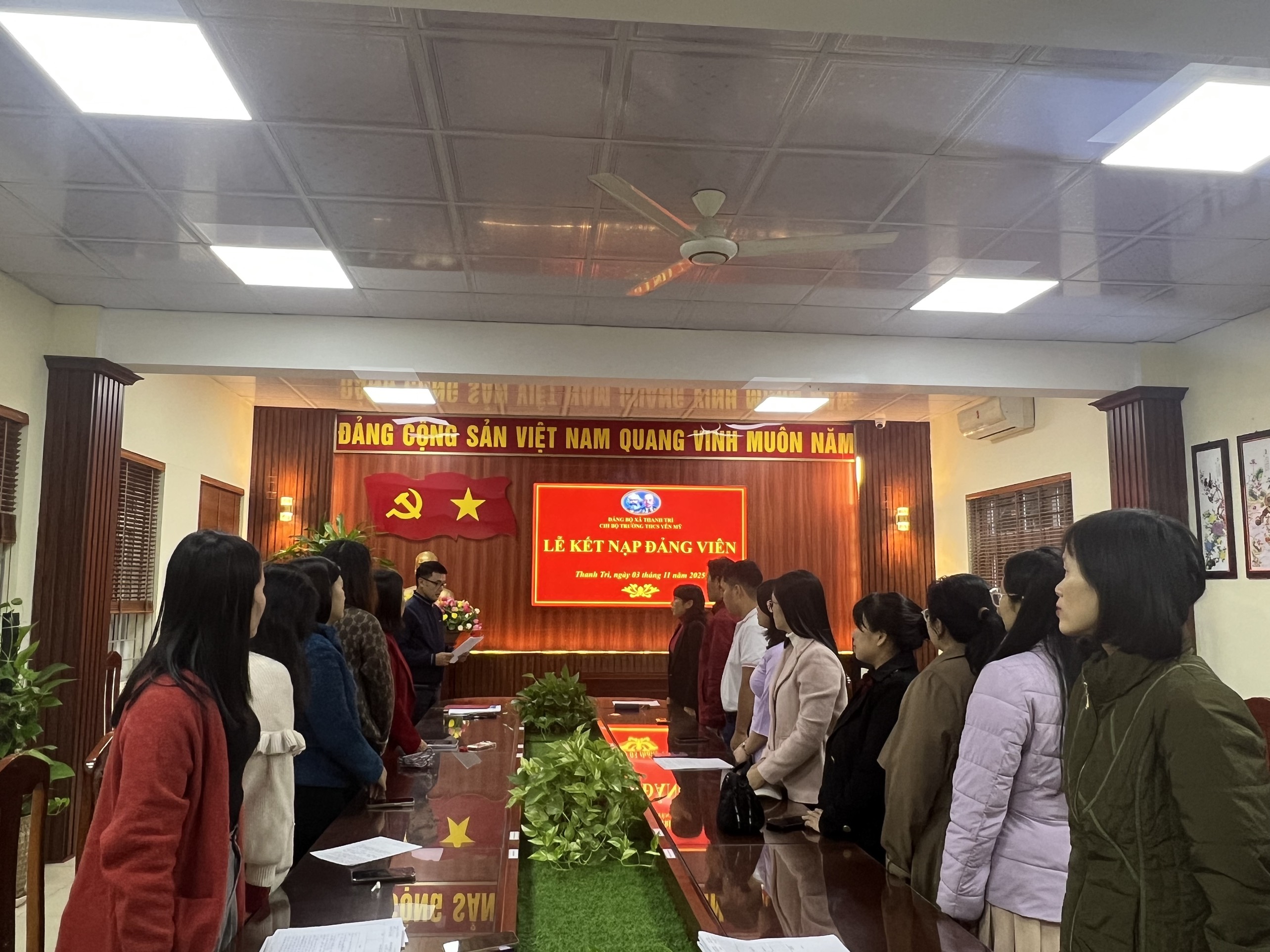 Thực hiện Quyết định của Đảng ủy xã Thanh Trì về việc kết nạp đảng viên mới, chiều ngày 03/11/2025, Chi bộ trường THCS Yên Mỹ đã long trọng tổ chức Lễ kết nạp Đảng viên cho quần chúng ưu tú Nguyễn Thị Tuyết – Tổ Khoa học Xã hội.