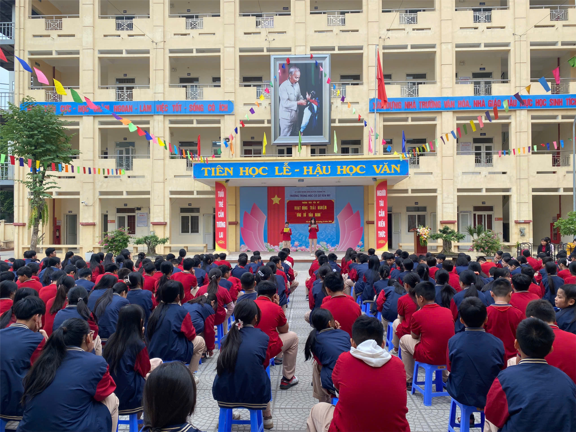 Tham dự buổi sinh hoạt dưới cờ có thầy giáo Phạm Văn Thắng – Bí thư chi bộ, Hiệu trưởng nhà trường; cô giáo Trần Thị Hà – Phó hiệu trưởng nhà trường và các thầy cô giáo chủ nhiệm của 9 chi đội.