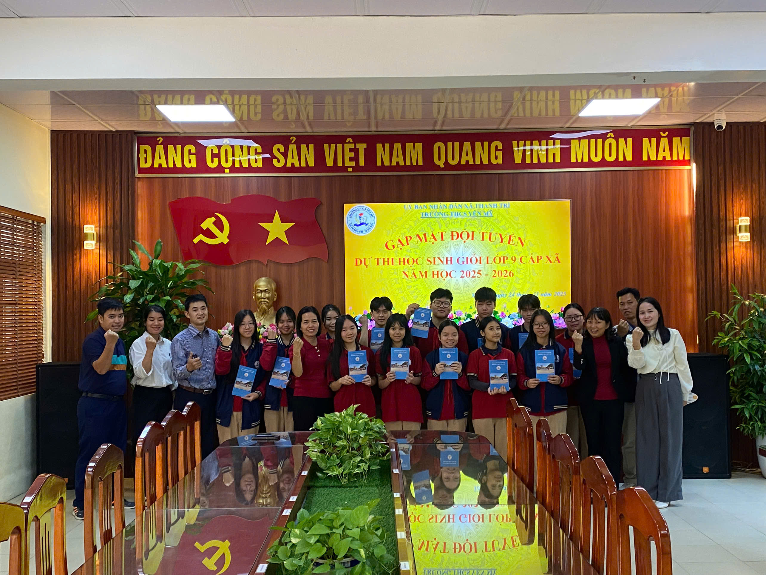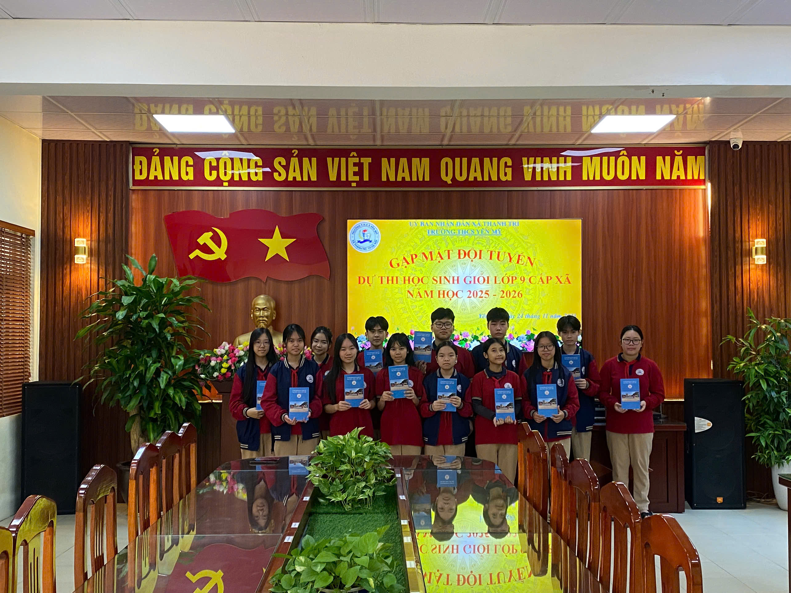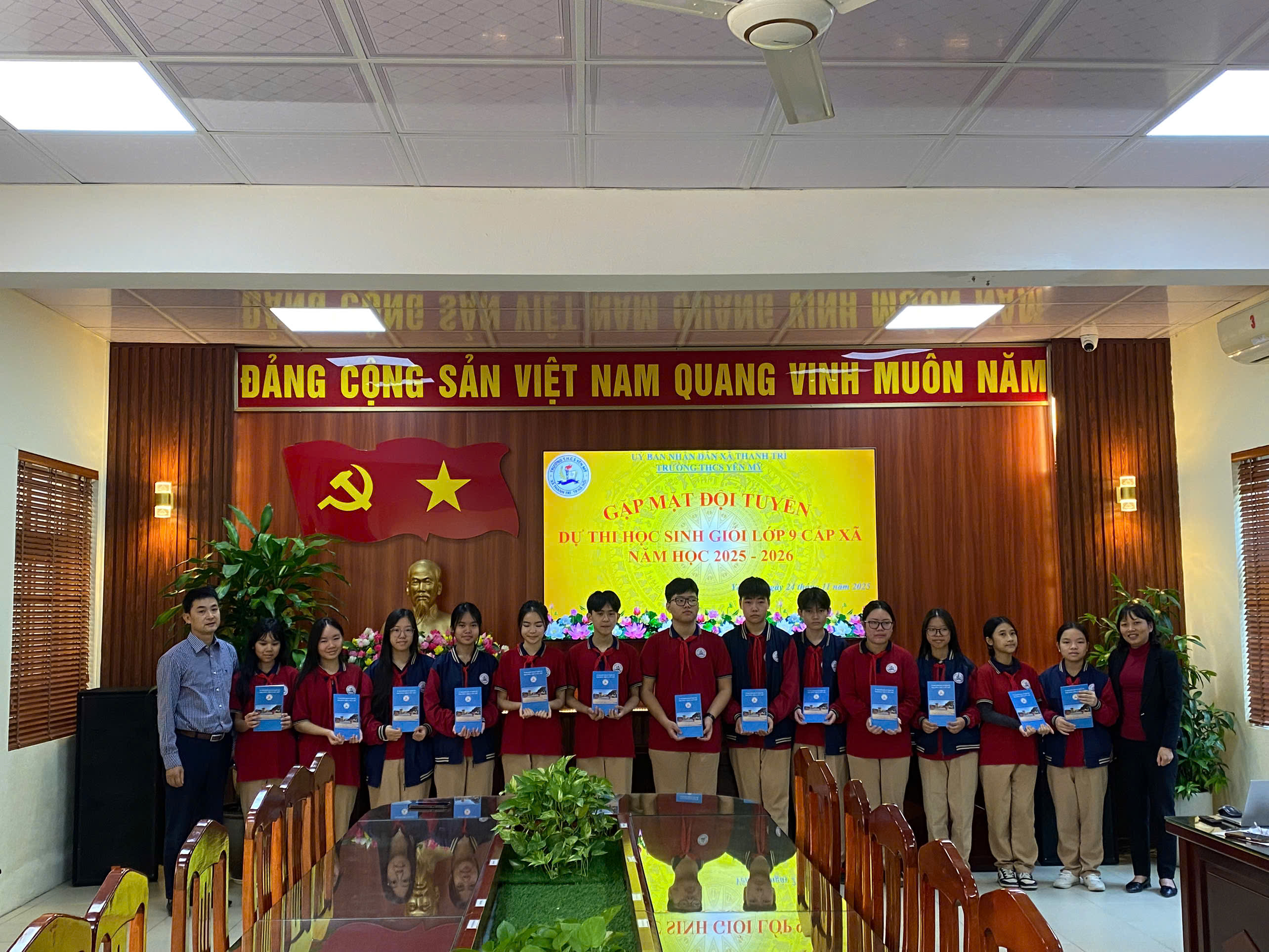 Ngày 24/11/2025, Ban Giám hiệu trường THCS Yên Mỹ đã tổ chức buổi gặp mặt và động viên các em học sinh lớp 9 tham dự Kỳ thi Học sinh giỏi cấp xã Thanh Trì năm học 2025 - 2026. Buổi gặp mặt diễn ra trong không khí trang trọng, ấm áp và đầy tinh thần khích lệ.