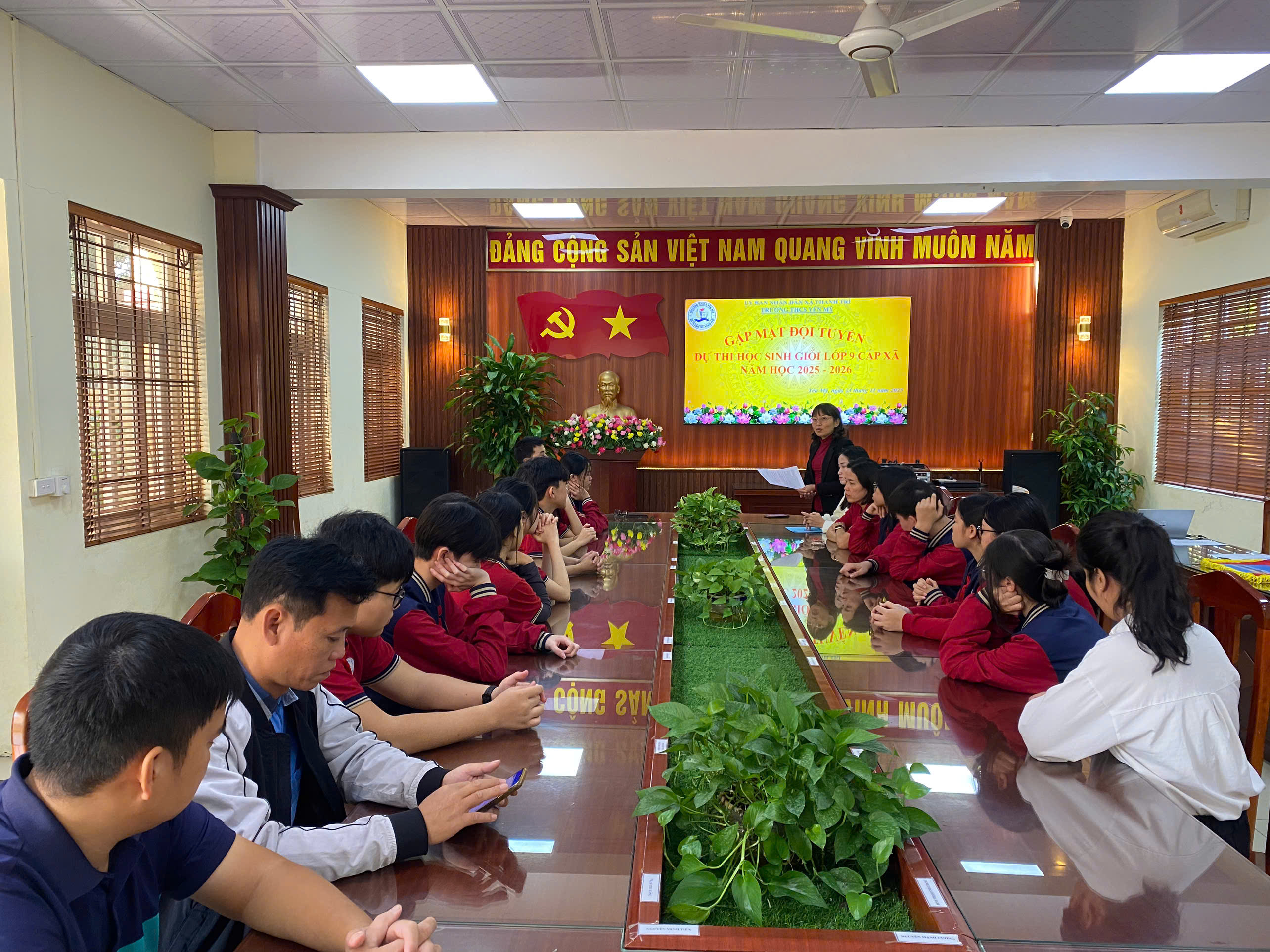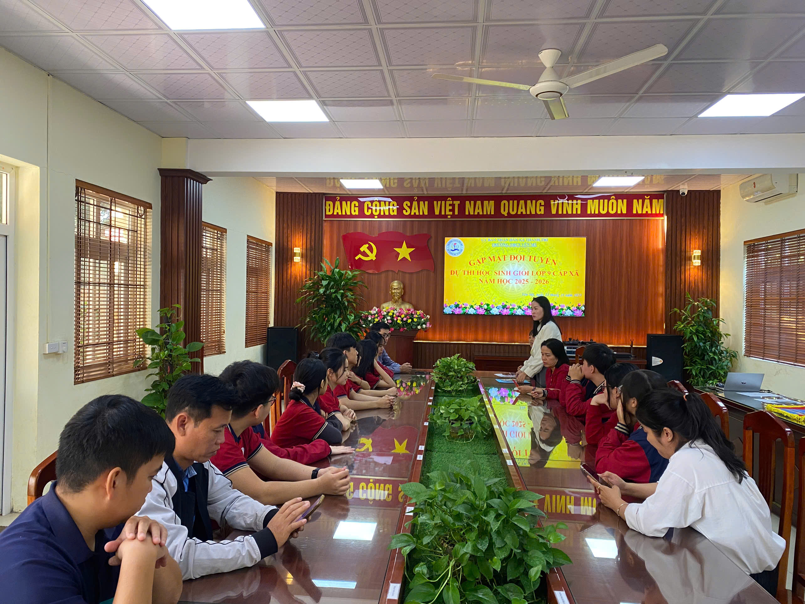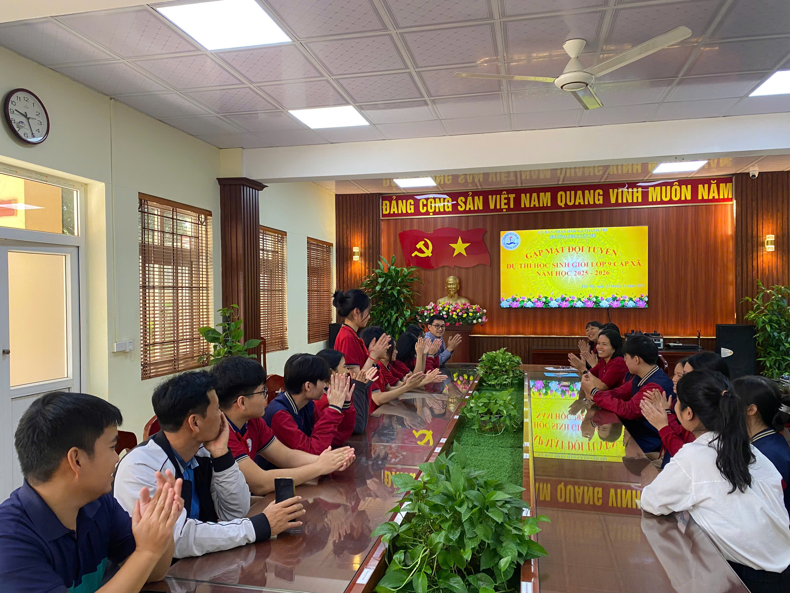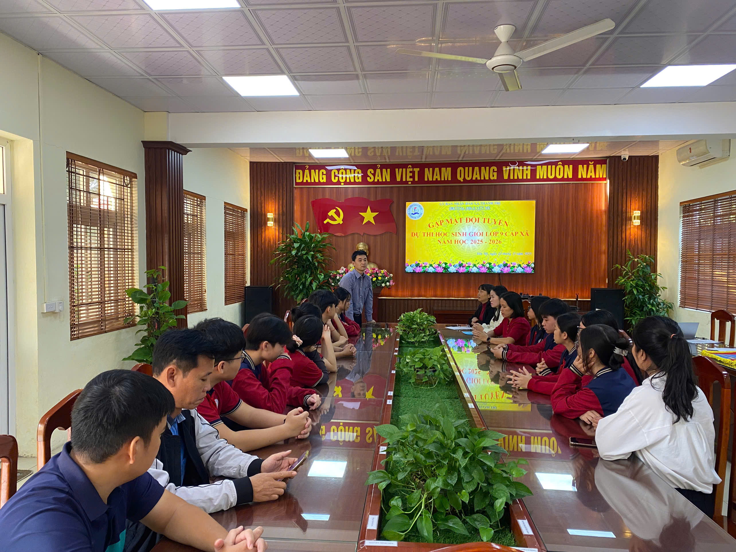 Ngày 24/11/2025, Ban Giám hiệu trường THCS Yên Mỹ đã tổ chức buổi gặp mặt và động viên các em học sinh lớp 9 tham dự Kỳ thi Học sinh giỏi cấp xã Thanh Trì năm học 2025 - 2026. Buổi gặp mặt diễn ra trong không khí trang trọng, ấm áp và đầy tinh thần khích lệ.