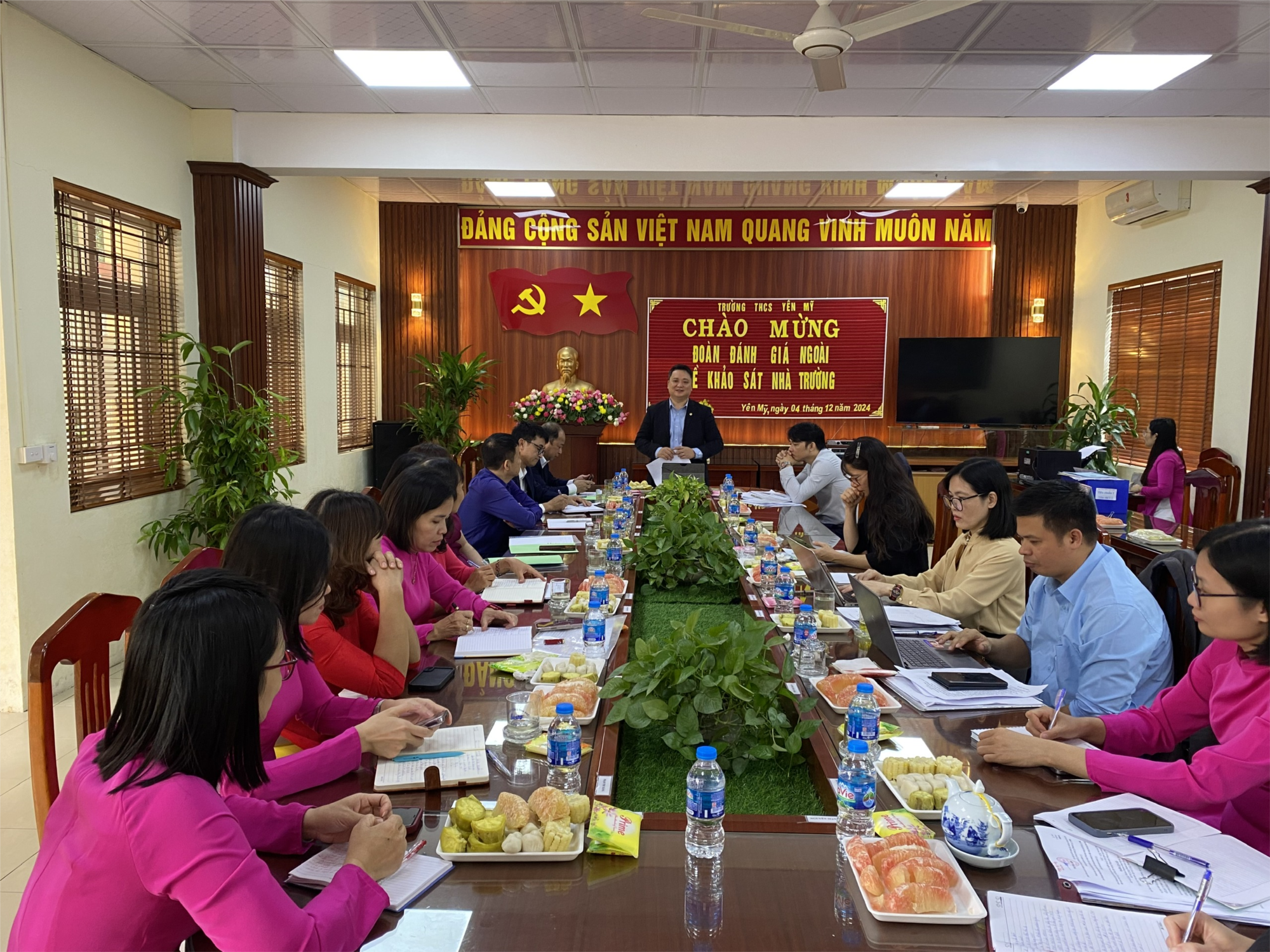 Được sự quan tâm, chỉ đạo sát sao của lãnh đạo ngành, các cấp uỷ Đảng, chính quyền địa phương cùng với sự nỗ lực của tập thể cán bộ, giáo viên, nhân viên nhà trường, trường THCS Yên Mỹ đã hoàn thành quy trình tự đánh giá, đề nghị kiểm tra công nhận trường chuẩn quốc gia. Trong ngày khảo sát chính thức tại trường THCS Yên Mỹ, qua nghiên cứu các hồ sơ, tài liệu, minh chứng do nhà trường cung cấp; xem xét cơ sở vật chất, trang thiết bị, hoạt động của nhà trường; gặp gỡ phỏng vấn cán bộ, giáo viên, nhân viên và cha mẹ học sinh của trường, Đoàn đánh giá ngoài đã ghi nhận, đánh giá và nhận xét các mặt hoạt động của nhà trường theo 5 tiêu chuẩn của Thông tư số 18/2018/TT-BGDĐT ngày 22/8/2018 về việc ban hành quy định về kiểm định chất lượng giáo dục và công nhận đạt Chuẩn quốc gia đối với trường THCS, trường THPT và trường THPT có nhiều cấp học. Trên cơ sở đó, Đoàn đánh giá ngoài nêu ra những điểm mạnh, hạn chế cụ thể và tư vấn cho nhà trường nhằm cải tiến nâng cao chất lượng giáo dục.