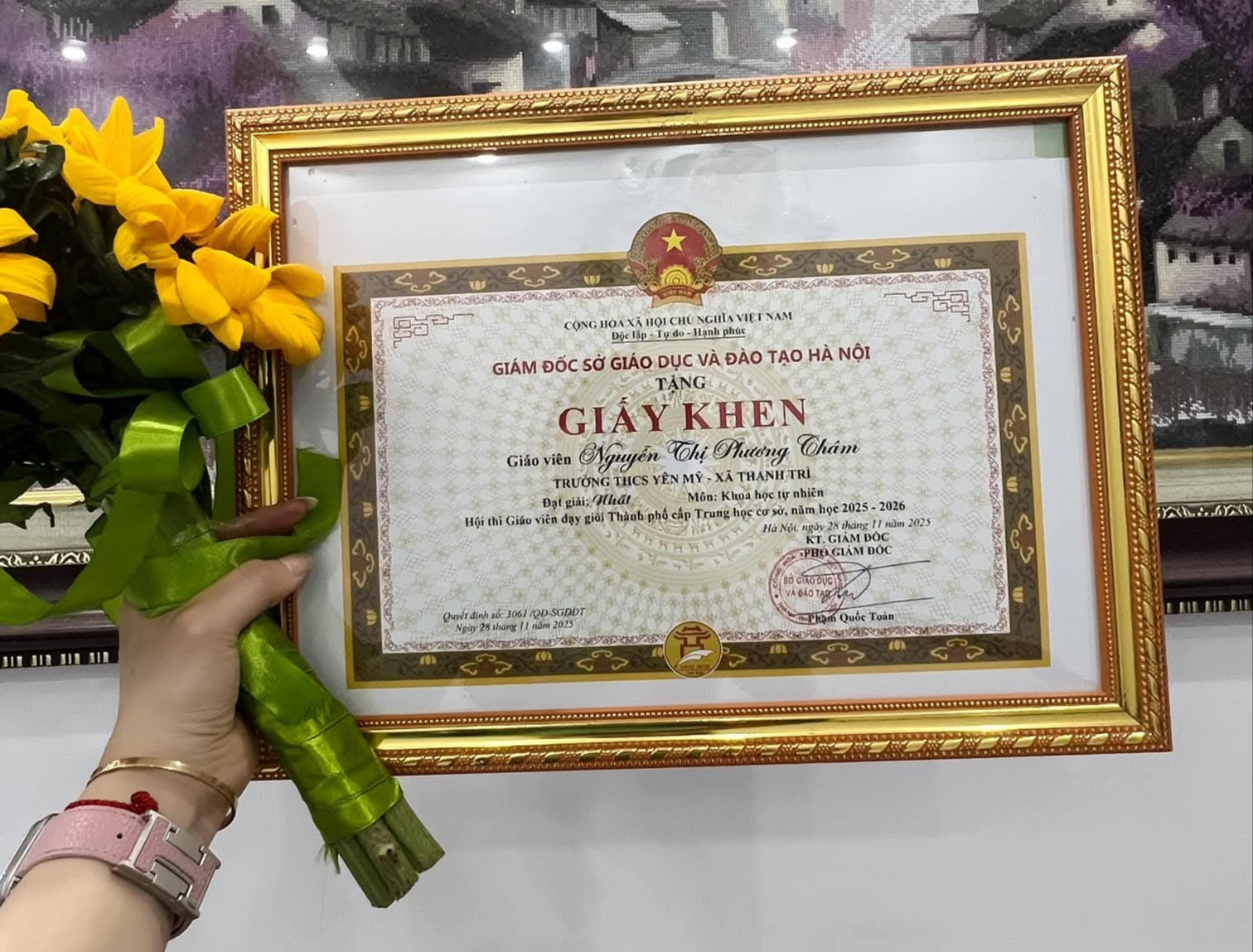 Giải Nhất cấp Thành phố mà cô Phương Châm đạt được đã góp phần quan trọng vào thành tích chung của xã Thanh Trì trong Hội thi năm nay, khẳng định sự quan tâm, chỉ đạo sát sao của địa phương đối với công tác phát triển đội ngũ giáo viên, cũng như tinh thần đổi mới, nâng cao chất lượng dạy học tại Trường THCS Yên Mỹ.